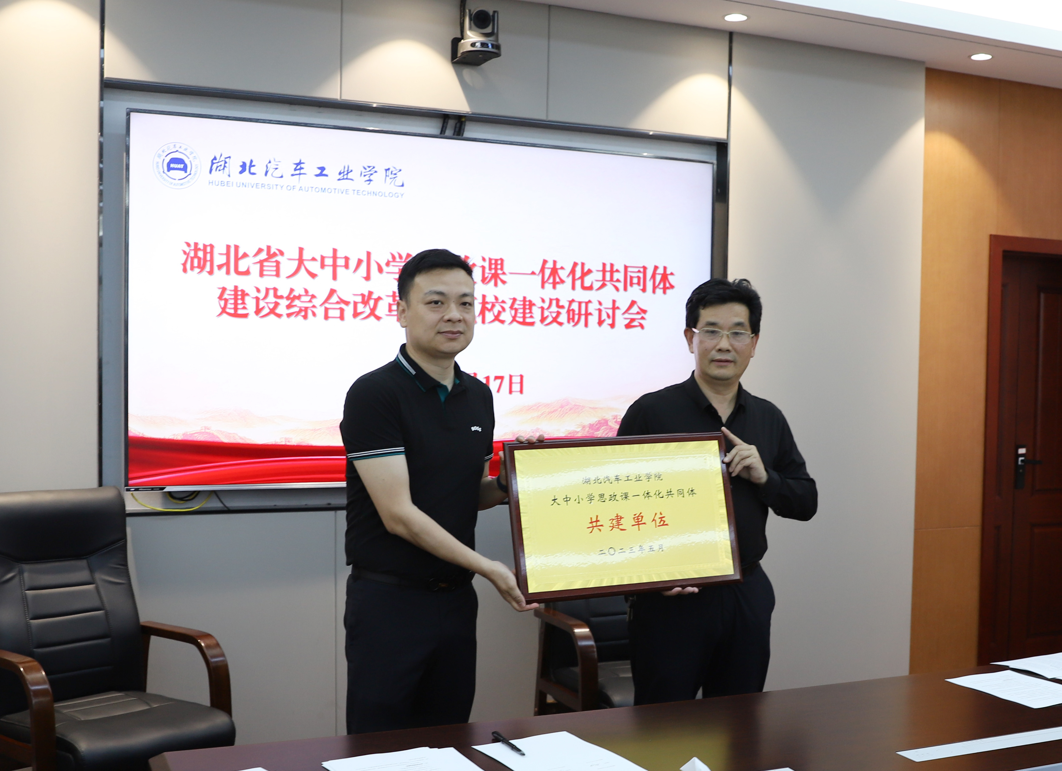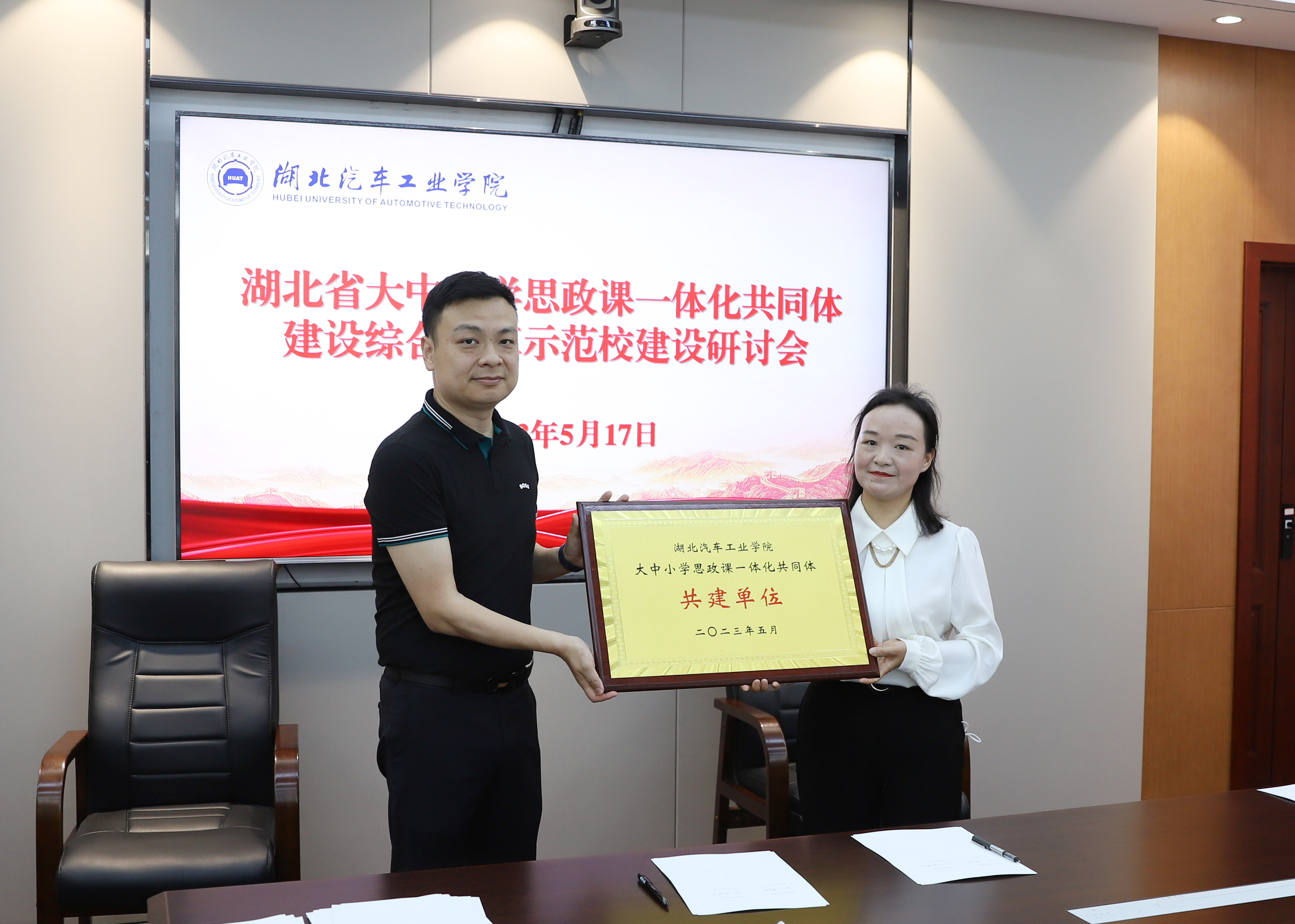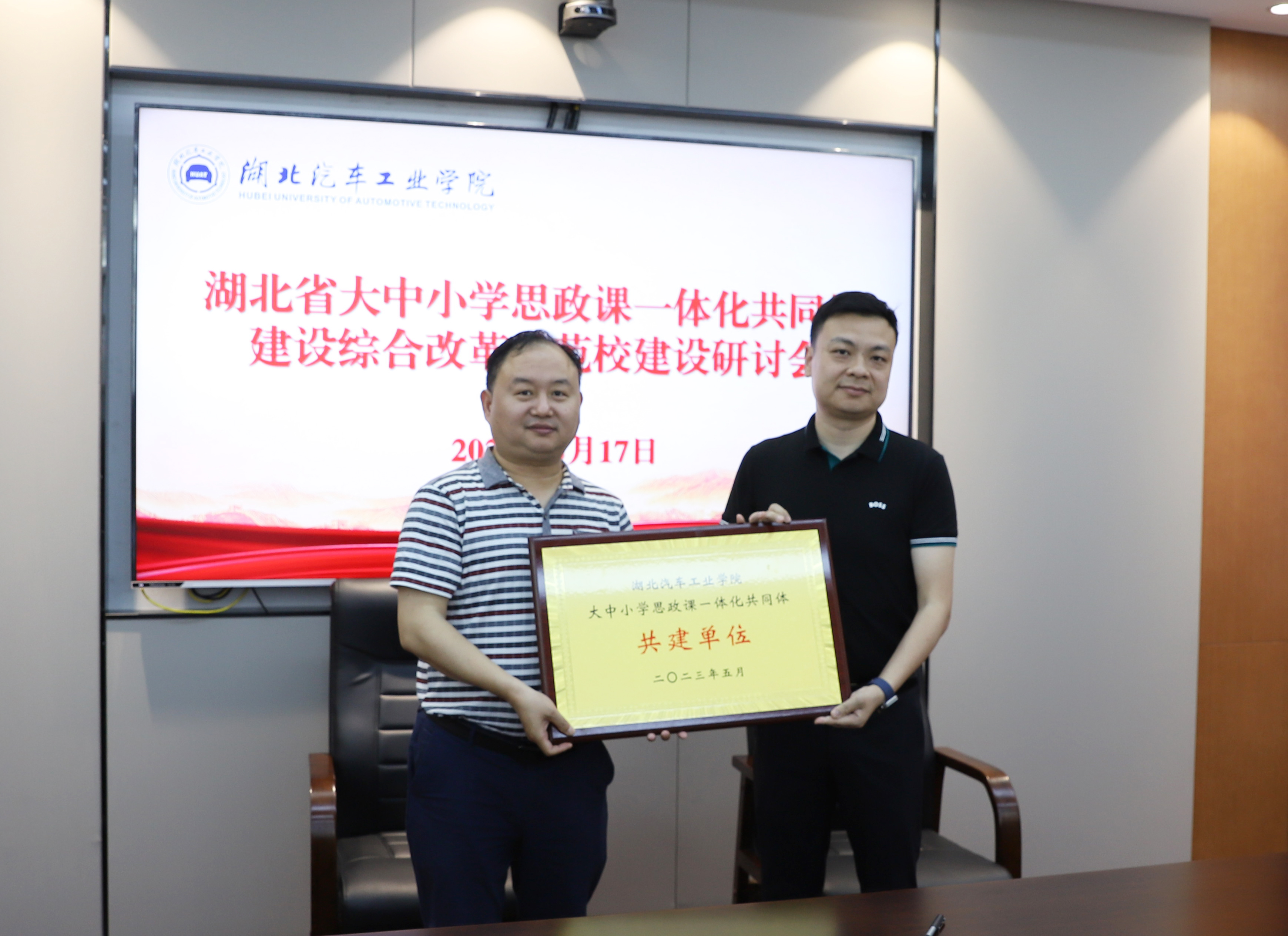 李涛指出,落实《湖北省教育厅关于推进全省大中小学思政课一体化共同体建设的指导意见》等文件精神,推进大中小学思政课一体化共同体建设综合改革示范校建设,我们责无旁贷。学校牵头获批湖北省大中小学思政课一体化共同体建设综合改革示范校,是对学校长期以来重视思想政治理论课建设并取得一定成绩的肯定。学校要依托汽车文化、武当文化、汉水文化、红色文化等具有十堰特色的优势资源,和共同体建设单位一同打造好思政教育新品牌。要抓好机制创新,建立共同体建设单位深度联系机制,架构“1+9+N”共同体模式,以共同体学校为主体,将相关区域学校也纳入思政教研体系之中。要抓好形式创新,根据大中小学育人方式的差异和特点,做好各单位对接互训,利用学校课程思政研究中心的平台优势,支持其它学校教师申报、参与相关课题。要抓好创新,坚持问题导向,探索如何将中小学与大学的思政教学内容合理对接。要抓好成效创新,共建青年视频号、红色领航网、汽车强国课、数字思政库和实践基地群。共同体建设单位要善思善谋,建好用好大中小学思政课一体化共同体建设平台,早出多出高质量成果。