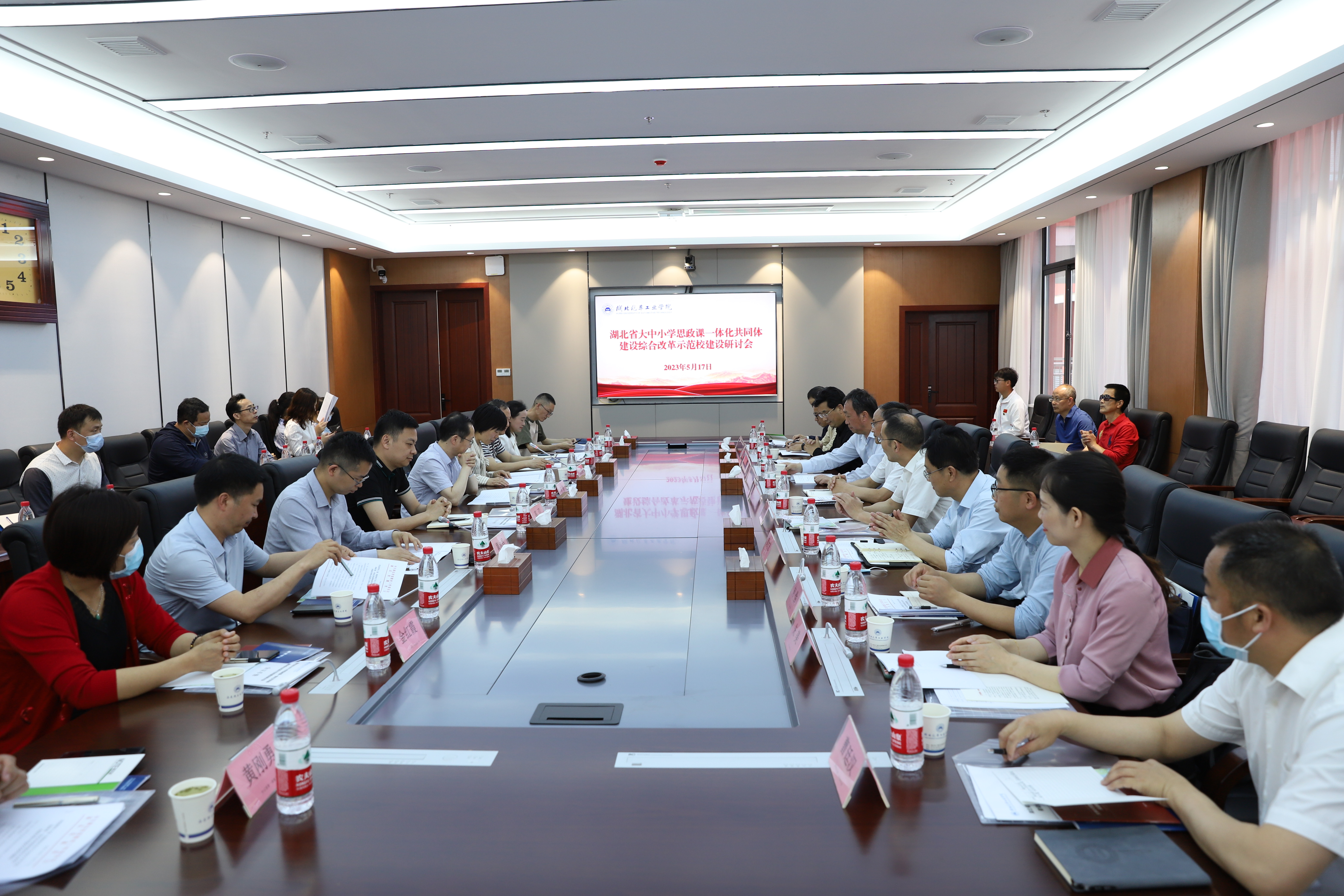 5月17日,湖北省大中小学思政课一体化共同体建设综合改革示范校建设研讨会在学校产教大楼三楼会议室举行。校党委副书记李涛,党委常委、副校长高刃出席会议。KY开元集团官网、科技学院以及十堰市第一高级中学、十堰市车城高级中学、郧西县教育局、郧西一中、竹山县教育局和竹山县中小学校等共同体建设单位负责人参加会议。会议由党委常委、副校长张红霞主持。