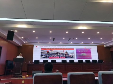 郭文萍护士长作了“青春有担当,奋斗新时代”的主题演讲。她声情并茂地讲述了疫情防空中逆行而上,不计生死,支援武汉的亲身经历;讲述了如何成长为一名专业空中医疗急救员的奋斗经历。她激励青年学生在新时代要坚定理想信念、练就过硬本领、砥砺道德修养,敢担当能吃苦肯奋斗,在投身强国伟业中实现自身价值。