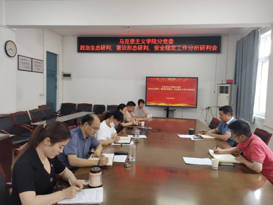 计毅波做了总结讲话。他充分肯定了各系部科室对目前工作的分析研判。他指出马院姓马,在政治生态、意识形态方面首先要坚决做到两个维护、增强四个自信,自觉与党中央保持高度一致。充分利用好课堂主渠道,做好习近平新时代中国特色社会主义思想的三进工作。在方式方法上要做到创新谋划,依托“三会一课”和主题党日进行主题教育,提升教师的政治觉悟。在党建引领方面,发挥好指挥棒作用,营造干事创业的良好氛围,引导大家撸起袖子加油干;面对歪风邪气,也不搞一团和气,要敢于亮剑,敢于同一些不良思想做斗争。他提出希望在校、院两级党委的指导下,培养一只“政治坚、本领高、作风硬”的高水平教师队伍,为学校三步走的发展战略做出更大的贡献。