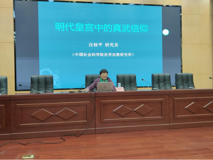 12月1日,中国社会科学院世界宗教所研究员汪桂平应邀为开元集团官网师生作题为“明代皇宫中的真武信仰”的专题讲座。讲座由人文学院学院副院长安军主持,师生代表130余人到场聆听。