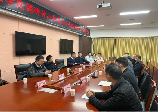 接着,调研团队在竹山县秦巴文化艺术中心一楼1号会议室,参加了以新时代文明实践中心建设情况和特色文化保护传承工作为主题的调研座谈会。会上,竹山县文化馆、博物馆、新时代文明实践指导中心等相关负责人向调研团队介绍了竹山县在特色文化保护传承方面所做的工作和取得的成效。KY开元集团官网调研组的教师们,充分发挥专业优势踊跃发言,提出了包括加大对竹山县特色文化产业的扶持力度、加强文化人才队伍建设、打造县域文化品牌、推动文旅融合发展等特色文化保护传承方面的意见和建议。