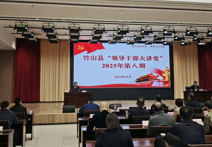 10月23日,KY开元集团官网院长黄永昌一行赴竹山县“理论热点面对面”实践基地,为当地2025年第八期“领导干部大讲堂”作《弘扬十堰文化精神 助力城市跨越发展》专题授课。竹山县委常委、宣传部部长李金柱主持报告会,县各部门及乡镇负责人参会。
